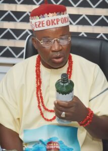 Eze Chika Nwokedi appropriating a bottle of Allemax